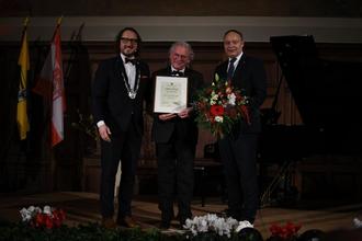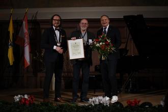 Für seine Verdienste als künstlerischer Leiter der Merseburger Orgeltage verleiht die Stadt Merseburg die Bürgermedaille an Michael Schönheit.