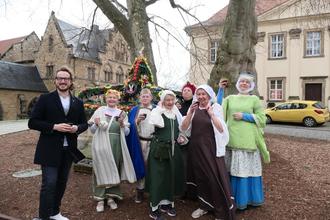 … oder wir sehen uns auch hier am Dombrunnen, der wie in jedem Jahr österlich geschmückt wurde. Herzlichen Dank den Frauen und Männern der Interessengemeinschaft Historische Kostüme Braunsbedra und der Volleyballgruppe WSG Rotthügel Merseburg.