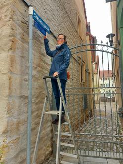 Schilderpatin Gina Stelter hat sich beim Bummeln durch die Merseburger Gotthardstraße schon oft die Frage gestellt, weshalb die Stänkergasse eigentlich Stänkergasse heißt, und ist dann mit dem Merseburger Altstadtverein in Kontakt gekommen.