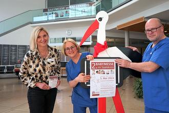 Auf dem Foto von rechts: Chefarzt Kurt Müller, die Leitende Hebamme Anke Nerlich und Petra Dornieden vom Organisations-Team.