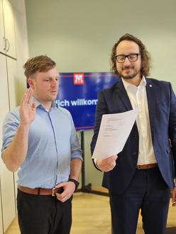 Vor diesem Hintergrund bildet die Stadt Merseburg erstmals selbst Brandmeister im Beamtenverhältnis aus: Jean Michel Huber und Felix Thorhold bereichern als Brandmeisteranwärter seit 01. April die Merseburger Feuerwehr. Die feierliche Ernennung erfolgte durch Oberbürgermeister Sebastian Müller-Bahr zum Ausbildungsbeginn unter Ablegung des Diensteides.
