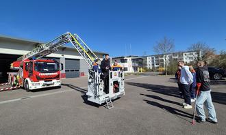 Auch bei der Feuerwehr gab es viel zu entdecken: Verschiedene Einsatzfahrzeuge wurden vorgestellt und der Alltag auf der Feuerwache erklärt. Das Highlight war für die Kinder die Drehleiter: Nicht an jedem Feuerwehrstandort ist eine Drehleiter vorhanden, die Fahrt in deren Korb war für viele also etwas Besonderes. In Bezug auf das Thema Technische Hilfeleistung wurde mit dem Spreizer, der zur Befreiung von Personen aus verunfallten PKW dient, abschließend noch Jenga gespielt.