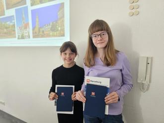 Emma und Luisa durften hinter die Kulissen der Bibliothek und des Amts für Finanzen schauen.