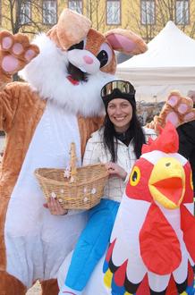Der Osterhase und die Hahn-Reiterin begeisterten die Besucher:innen des Ostermarkts.