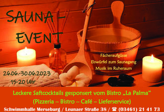 Wegen der Kreis-, Kinder- und Jugendspiele und den Wettkämpfen der DLRG bleibt die Merseburger Schwimmhalle am Samstag, dem 24. Juni und am Sonntag, dem 25. Juni geschlossen. Die Sauna und der Kraftraum sind von der Schließung nicht betroffen. Sauna und Kraftraum sind jeweils von 9 bis 16 Uhr geöffnet.