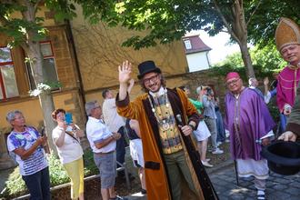 OB Müller-Bahr grüßt die Gäste des Schlossfestumzuges