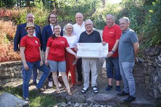 Im Rahmen des Besuchsprogramms übergab Klaus Strehl im Beisein von Oberbürgermeister Sebastian Müller-Bahr und Stadträten einen Scheck in Höhe von 300 € an die Vereinsmitglieder des Förderkreises Klosterbauhütte Merseburg e.V. Rainer Urban, Karen Eschner und Nadine Schibrowski.