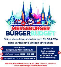 Unter www.merseburg.de können Sie, die Bürger:innen unserer Stadt, Vereine, Initiativen u. a. nachlesen, was Sie alles beachten müssen, damit Ihr Projekt es auf die Liste schafft. Nach ordnungsgemäßer Prüfung durch die Verwaltung und Stadtrat entscheiden letztlich Sie, die Bürger:innen und Bürger mit Ihren drei Stimmtalern am 16. Oktober, welche Projekte mit einem Maximalwert von je 9 000 € umgesetzt werden können.