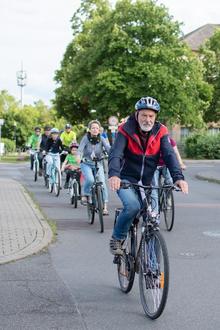 Am gleichen Tag fand ab 17:00 Uhr das "Anradeln" statt - eine gemeinsame Radtour, die uns und euch rund 8 Kilometer durch Merseburgs Innenstadt und Merseburg West führte. Nach einem regnerischen Vormittag hatten wir am Nachmittag Glück mit dem Wetter und radelten entspannt und mit dem ein oder anderen netten Gespräch durch die Sonne. Einen kurzen Zwischenstopp mit einer kleinen Überraschung gab es bei der Feuerwehr, hier wurden Radtaschen, Reparaturkits und Handyhalterungen ausgegeben.