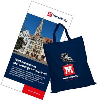 Außerdem hält das Faltblatt eine Überraschung bereit: Gegen Vorlage des abgedruckten Gutscheins gibt es in den teilnehmenden Geschäften ab Mitte August einen Stoffbeutel mit Rabe und Merseburg-Logo zum Einkauf gratis dazu.