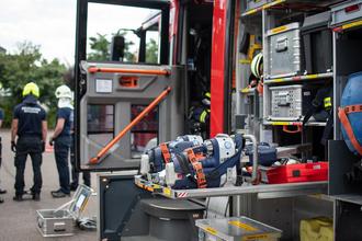Doch wie fühlt es sich an, im Einsatz mit dem Strahlrohr Brände zu löschen? Damit die Kinder spielerisch ein Gefühl für den Löschangriff bekommen, durften sie, ähnlich dem Dosenwerfen auf dem Jahrmarkt, alte Blechdosen mit dem Wasserstrahl eines Strahlrohrs abschießen. „Natürlich haben sich die Kinder am meisten gefreut, als sie am Strahlrohr standen und auf die Blechdosen zielen konnten, aber auch beim Betrachten des HLF gab es mehrere Wow-Momente, zum Beispiel bei der Kettensäge oder der hydraulischen Rettungsschere“, resümiert Wachabteilungsleiter Justin Vogel.