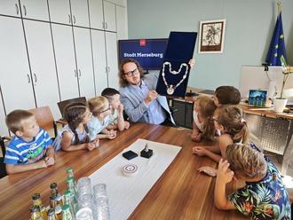 Merseburgs Oberbürgermeister Sebastian Müller-Bahr bekam von einer besonderen Delegation kleiner Bürger einen Besuch abgestattet. Rund 20 Kinder aus der Kindertagesstätte „Buratino“ besuchten den Oberbürgermeister in der Stadtverwaltung und dabei stand auch das Entdecken der "Rathaus-Schätze" auf der Tagesordnung.