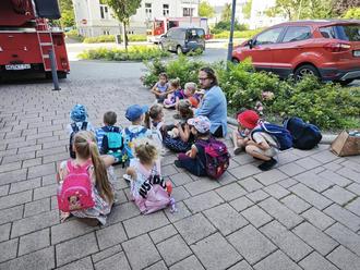 Nach einer kleinen Stärkung gab es noch eine Überraschung. Die Merseburger Feuerwehr simulierte für die Kinder einen kleinen Einsatz vor der Stadtverwaltung. Kreisbrandmeister Michael Jahn erklärte die Schutzmaßnahmen vom Feuerwehranzug bis zur Drehleiter mit Korb des Feuerwehrautos. "Ein rundum gelungener Besuch beim Oberbürgermeister", schwärmte Kita-Leiterin Katrin Horn.