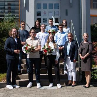 Die „alten“ und neuen Azubis mit OB Müller-Bahr, Amtsleiterin Witzel (2.v.r.) und Azubi-Verantwortlicher Hanusa (r.)