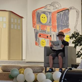 Das liebevoll einstudierte Programm begeisterte die Gäste: Die Grundschulkinder nahmen die Anwesenden mit auf eine Zeitreise durch die vergangenen Jahrzehnte bis in die Gegenwart: Welche Kleidung wurde getragen? Welche Musik hat man gehört? Welche Bücher hat man gelesen? Und vor allem: Wie hat man ohne Internet Hausaufgaben gemacht? (Wir zitieren "Opa" Thaddeus: "Wir haben geblättert, von A bis Z.") Zum Abschluss des Programms sangen die Kinder das Schullied, musikalisch begleitet wurde der Abend zudem vom städtischen Musikverein JBO Merseburg, die für Stimmung in der Schulaula sorgten.