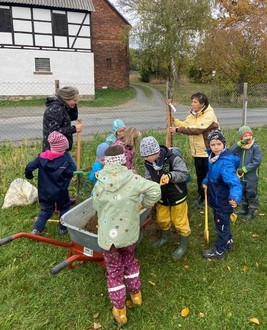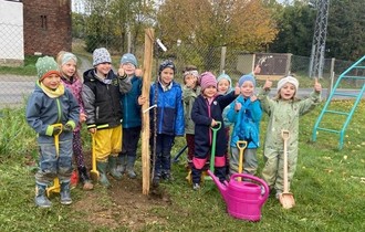 Der Kindergarten „Kuschelbär“ Schönbach pflanzte einen Kirsch- und einen Pflaumenbaum nebst drei Obststräuchern auf dem Grundstück des hiesigen Spielplatzes.