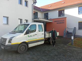Herr Kuhn von „Landschaftsbau Kuhn“ und Herr Oertel von „Oertel Möbelwerkstätten GmbH&CoKG“ sagten den Schülern sofort ihre Unterstützung zu.