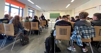 Die Klassen 9a/b im Gespräch mit Patrick Hoff.