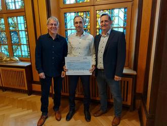 Wolfgang Buttkus, 1. Vorsitzender Förderverein Sportplatz Neumark e. V., Stephan Mothes, Leiter operatives Geschäft SBG, Sven Köpp, Bürgermeister Neumark und Gründungsmitglied des Förderverein Sportplatz Neumark e. V. (v.l.n.r.)
