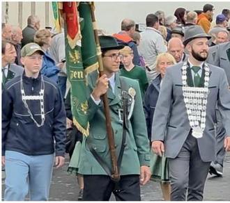 Zum sonntäglichen Festumzug führten unsere beiden Schützenkönige die Formation der Schützenvereine an.