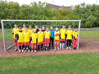 Am 17. Oktober fanden sich junge Fußballer aus dem Vogtland auf dem Sportplatz der Sporthalle Cunsdorfer Straße in Reichenbach ein, um sich ein spannendes Fußballturnier zu liefern. Sechs Mannschaften aus Reichenbach, Rodewisch, Auerbach, Lengenfeld und natürlich auch Neumark traten gegeneinander an. Die Oberschule Neumark wurde durch Schüler der 7. bis 10. Klassen repräsentiert, die mit viel Euphorie und Mut und der Unterstützung von Herrn Schlemme an das Turnier herangingen. Die Ergebnisse unserer Mannschaft waren ein Unentschieden, ein Sieg (3:0) und eine Niederlage im Halbfinale (0:1). Davon ließen sich die Fußballer aus Neumark aber nicht einschüchtern und kämpften tapfer und erfolgreich um Platz 3 und gewannen 2:0. Somit konnten sich die Neumarker Schüler einen sehr guten 3. Platz in diesem Fußballwettkampf sichern. Der eine Gegentreffer im Halbfinale war fast ärgerlich, aber am Ende überwog die Freude über die Bronzemedaille.