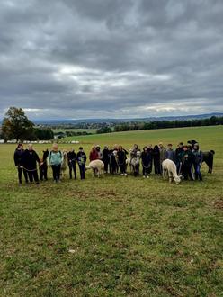 Im Oktober unternahmen die Schüler der Klasse 7a und ihre Klassenleiterin Frau Haseneyer einen Ausflug zum Alpakahome in Brunn. Die beiden Praxisberaterinnen Cynthia Schneider und Claudia Kirst hatten im Rahmen des Projektes „Praxisberater an Oberschulen“ diesen Tag organisiert. In diesem Projekt geht es um Berufsorientierung in verschiedensten Bereichen. Ziel ist es, dass die Schüler praktische Erfahrungen sammeln. Sie sollen Einblick erhalten darüber, welche Berufe es gibt und welche Fähigkeiten in diesem Bereich nötig sind.