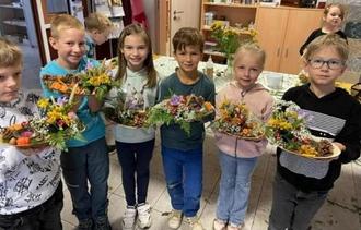 Die Klasse 2 mit Lehrer Herrn Richter der Grundschule Neumark waren am 04.10.2024 zu Besuch bei Naschi`s Glasblüte in Neumark. Die Schüler und Schülerinnen durften herbstliche Gestecke kreieren.