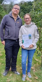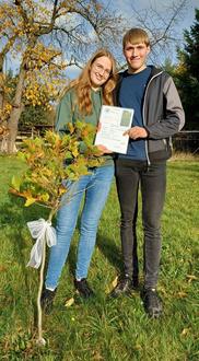 Familie Susi und Frank Riedel erhielten als Hochzeitsgeschenk einen Apfelbaum, den sie nun als Patenbaum pflegen.