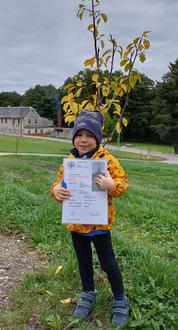 Familie Denise Seumel pflanzte 1 Pfirsich, 2 Apfel und 1 Nordmanntanne.