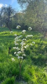 Frau Ettl pflanzte 2 Birnen und 2 Apfelbäume. Eine der Birnen besteht aus 3 alten Sorten: Clapps Liebling, Gute Luise und Williams Christ.