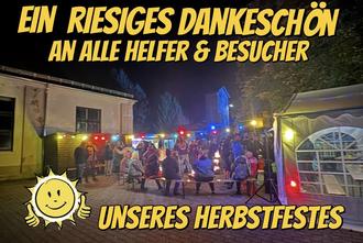 Wir möchten uns bei allen Beteiligten herzlich bedanken, die bei Planung, Einkauf, Zeltaufbau, Geländevorbereitung, Holzaufbereitung, herbstlicher Dekoration bis hin zur aktiven Durchführung, Abbau und Reinigung eine Unterstützung waren. Darunter auch die Kameraden der Feuerwehr Neumark, welche den Kindern bei Quiz und Lampionumzug stets zur Seite standen.