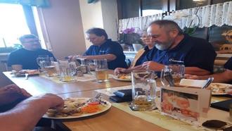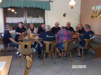 In diesem Jahr haben wir beschlossen, auf eine separate Ausfahrt zu verzichten und uns stattdessen zu einem Schnitzelessen zu treffen. Ausgesucht haben wir uns dafür die Gaststätte „Zum Reiterhof“ in Giegengrün. Zwei Kameradinnen und neun Kameraden der Alters- und Ehrenabteilung unserer Wehr trafen sich am 07.09.2023 im Gerätehaus, um dann gemeinsam mit dem Mannschaftstransportfahrzeug der FFw Schönbach und einem Privat-PKW aufzubrechen. Im Lokal angekommen, wurden wir sehr freundlich begrüßt und zum reservierten Tisch begleitet. Sofort wurden unsere Getränke- und Speisewünsche vom Wirt aufgenommen.