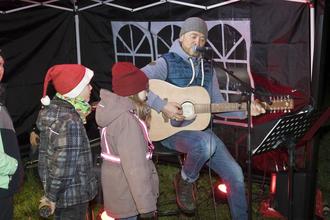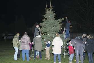 Ein Weihnachtsbaum ziert seit dem 29. November den Schönbacher Spielplatz. Das Prachtstück kommt aus dem Garten von Familie Scholz und wurde mit geeinter Manneskraft gefällt und aufgestellt. Der Baum ist ganz einzigartig, da der Schmuck dafür selbst gebastelt wurde. Bemalte Holzsterne, kleine Wichtel und bemalte Glocken - die Kinder und Erwachsenen haben sich wirklich ins Zeug gelegt und kleine Kunstwerke erschaffen. Nicht alle konnten zum Weihnachts-Basteln kommen; dafür wurde zu Hause eifrig gewerkelt. Geschmückt wurde der Baum natürlich auch von den Kindern. Zuvor aber wurde unser Weihnachtsbaum-Stellen von Lutz Müller an der Gitarre eröffnet. In der Weihnachtsbäckerei, oh Tannenbaum, Stille Nacht, feliz navidad... ein Klassiker folgte auf den nächsten. Ganz besonders begeistert waren die Kleinen, sie schmetterten Lied um Lied und bekamen einfach nicht genug. Ein paar haben sogar eine Solo-Vorstellung abgeliefert. Wird das Weihnachtsbaum-Stellen eine Tradition? Wir hoffen schon!