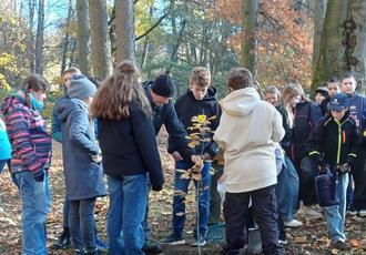 Auch die Schüler der Oberschule, mit den notwendigen Geräten ausgerüstet, pflanzten in Teamarbeit und mit Hilfe von Herrn Sölle ihrerseits ihre beiden Eichenbäumchen.