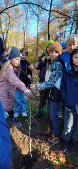Anschließend setzten sie unter der Leitung von Herrn Sölle vom Bauhof ihre beiden Eichen.