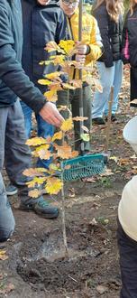Herr Barta erweiterte mit dem Pflanzen seiner Ungarischen Eiche die Artenvielfalt im Park.