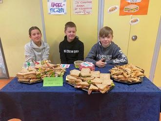 Drei Schüler der Klasse 6b verkauften eifrig die selbstgemachten Sandwiches.