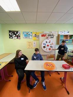 Ein Highlight unseres Tages: Das Glücksrad unter der Leitung der Klasse 6a.