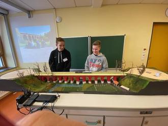 Die Römertalbrücke in Steinpleis nachgebaut: Dies zeigten die Schüler stolz im Physikkabinett.