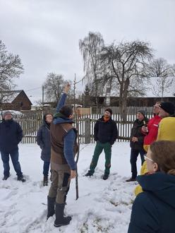 In Schönbach trafen wir uns am 01. Februar 2026 mit Jörn Scholz bei Familie Grimm zum Obstbaumschnitt. In ruhiger Atmosphäre erklärte er die wichtigsten Handgriffe, zeigte, welche Äste bleiben dürfen und wo ein beherzter Schnitt dem Baum guttut. Viele waren überrascht, wie viel weggeschnitten werden darf. Ziel ist es, den Baum gesund zu erhalten und zu einem guten Ertrag zu verhelfen, sodass im Oktober die mobile Mosterei wieder leckeren Fruchtsaft pressen kann.