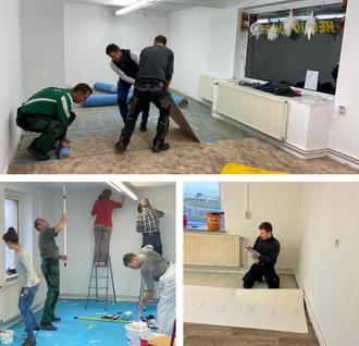 Unser Dorf-Treffpunkt ist so hübsch wie nie zuvor. Der wellige Boden ist Geschichte, auch der alte Teppich musste weichen. Dafür haben wir jetzt einen neuen und pflegeleichten Fußbodenbelag. Die Farbe an den Wänden ist frisch, und demnächst werden hier noch Fotos mit Ansichten von Schönbach aufgehängt. Dank vieler fleißiger Hände konnten wir das Projekt „Aufhübschen“ in kurzer Zeit bewältigen. Vielen Dank an alle! Außerdem freuen wir uns über eine neue Ausstattung. Angefangen von einer Kaffeemaschine, über einen Beamer samt Leinwand bis hin zu Puzzle-Matten, die künftig vor allem beim Kindersport zum Einsatz kommen (gefördert durch LEADER). Neue Tische und Stühle, neues Geschirr und Besteck (gefördert durch SIMUL+ dank Frank Riedel) runden das Ganze ab.