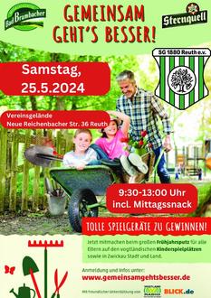 Liebe Mitglieder, Freunde und Unterstützer der SG 1880 Reuth, liebe engagierte Bürger, wir laden euch herzlich ein, gemeinsam anzupacken! Am 25. Mai 2024 von 9:30 bis 13:00 Uhr findet unser Arbeitseinsatz statt. Lasst uns zusammen unser Vereinsgelände auf Vordermann bringen. Jede helfende Hand wird gebraucht!