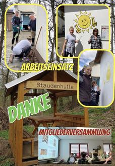 Am 06.05.23 um 9:30 Uhr trafen sich die freiwilligen Helfer zum Arbeitseinsatz. Dieser fand in Zusammenarbeit mit der SG 1880 Reuth e.V. statt. Gemeinsam wurde das Arial an der Turnhalle geputzt und verschönert. An unserem Vereinsraum strahlt ab jetzt die leuchtende Sonne der Dorfgemeinschaft. Ebenfalls am Eingang des Vereinsraums wurde ein Weinstock gepflanzt, sowie ein Blumenkübel platziert. Die Freiwilligen befreiten den Spielplatz von Unkraut, räumten die Spielzeugkiste auf und verpassten unserem Vereinsraum eine Grundreinigung. Nach getaner Arbeit sorgten die beiden Vereine für Verpflegung. Ein erfolgreicher Arbeitstag bei schönem Wetter beglückte alle Teilnehmer und hoffentlich auch die Reuther Einwohner und Besucher. Im Vorfeld bekam unsere Staudenhütte ihr Namensschild. Der Vorstand bedankt sich bei allen Aktiven für ihre Mitwirkung.