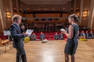 Kreisbrandmeister Gerd Pürzel und Pressesprecherin Madlen Schulz führten durch den Abend.
