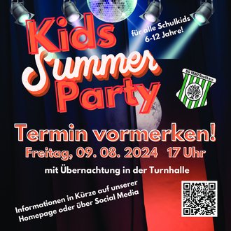 Nach der großartigen Resonanz im vergangenen Jahr lädt die SG 1880 Reuth e.V. zur zweiten Auflage der ultimativen Kids Summer Party am 09. August 2024 ein!