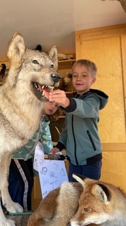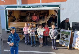 Zwei freundliche Jäger aus dem Jägerverein zeigten die Waldbewohner hautnah. Von präparierten Exemplaren, Schädelmodellen und Geweihen bis Tierspuren, war alles dabei.