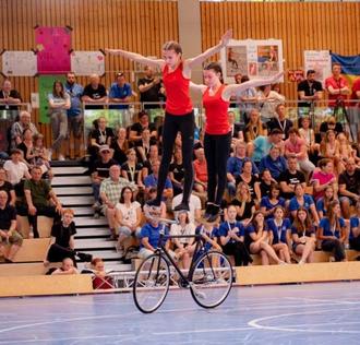 Lene Tuchscherer und Emma Köhler gewannen die Ostdeutschen Meisterschaften im Kunstradsport in der Kategorie Zweier. Die beiden Schülerinnen der Klasse 7c sind ein gutes Team, seit Grundschulzeiten trainieren sie zweimal wöchentlich zusammen. Das viele Training zahlt sich aus, denn auch bei den Deutschen Meisterschaften mischten sie vorne mit und belegten im Zweier einen hervorragenden fünften Platz. Bei den Ostdeutschen Meisterschaften wurde Lene zusätzlich Vierte im Einer, Emma wurde Fünfte. Ihre Trainerin Bianca Müller vom ESV Zwickau ist sehr stolz auf sie. Dieses Jahr fanden die Ostdeutschen Meisterschaften in Berlin statt. Wir fragten Lene, was für sie die Faszination dieser Sportart ausmacht. Lene antwortete, dass man verrückte Sachen auf dem Rad machen kann, es ist eine wenig bekannte Sportart und Lene entflieht beim Training und beim Wettkampf damit dem Alltag. Ängstlich sollte man jedoch bei dieser Sportart nicht sein, da man z.B. auf dem Sattel oder dem Lenker des Rades stehen muss. Stürze gehören zum Alltag im Training, meist bleibt es jedoch bei Prellungen und Schürfwunden. Lene gefällt es, dass sie im Zweier mit einer anderen Fahrerin harmonieren muss. Ziele für das nächste Jahr sind wiederum die Teilnahme an den Ostdeutschen und Deutschen Meisterschaften. Lene ist gerne Schülerin an der Oberschule Neumark. Ihre Begeisterung für Sport zeigt sich auch in ihrem Lieblingsfach, das ist natürlich Sport. Auch Emma liebt den Sportunterricht, aber ebenso den Kunstunterricht.