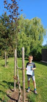 Am 21.06.2025 übergab Frau Mothes die Patenurkunde für den Familienbaum Winterlinde an Frau Beier. Die beiden Kinder erhielten jeweils für ihren Patenbaum die Urkunde, die sie, wie auf dem Foto zu sehen, stolz präsentieren: