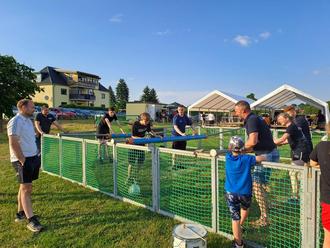 Der Samstagvormittag stand im Zeichen der Jugend. Die letzten Punktspiele der F- und E-Junioren sowie ein Turnier der F-Junioren standen auf dem Programm. Am Nachmittag fanden zunächst die letzten Heimspiele unserer Herren-Mannschaften statt, bevor sich unsere Herren, unsere Jugend-Freizeit-Truppe sowie eine Mannschaft der Feuerwehr beim Volleyball vergnügten. Der Sieg ging ziemlich eindeutig an die Feuerwehr. Nahtlos wechselte diese mit der Jugend an den Menschenkicker, wo der Erfolg eindeutig auf der Seite unserer Jungs lag. Allerdings ging es da primär um den gemeinsamen Spaß.