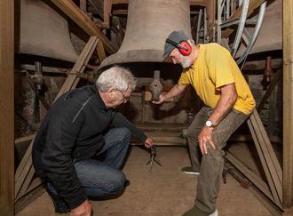 In langfristiger Vorbereitung auf ein optisches und akustisches Bild im Festumzug zur 800-Jahrfeier wurden – wie auf nebenstehendem Foto zu sehen – die Originaltöne unserer Neumarker Kirchturmglocken entnommen. Im Heimstudio Anselm Riess entstanden daraus jeweils die Anfänge allgemein bekannter Melodien aus dem Bereich Volkslied, Choral und heitere Muse. Daraus entstand ein Quiz, welches am 14. September im Rahmen des Festumzugs seinen Lauf nehmen wird. Auf einem diversen Stimmzettel sind acht Melodien vorgegeben, wovon aber nur vier zutreffend sind. Drei davon sollte man wenigstens heraushören und auf dem bereits bekannten Stimmzettel (sowie auf neuerdings hier und da ausliegenden farbigen A 5-Blättern) entsprechend ankreuzen! Eine diesbezügliche Preisverlosung findet am 5. Oktober ab ca. 15 Uhr bei Kaffee und Kuchen auf hiesigem Kirchplatz statt. Zu gewinnen gibt es je eine kostenlose Teilnahme an einer Bus-Ausfahrt zum Schaugießen einer der 3 neuen Glocken für Neumark in einer renommierten Glockengießerei. Ein eindrucksvoll seltenes Erlebnis! Unser Glockenwagen wird im Anschluss an den Festumzug noch eine Weile auf dem Kirchplatz stehen und seine Töne von sich geben. Hier haben dann alle Teilnahme Interessierten Gelegenheit, in Ruhe nachzuhören, mitzusummen und anzukreuzen.